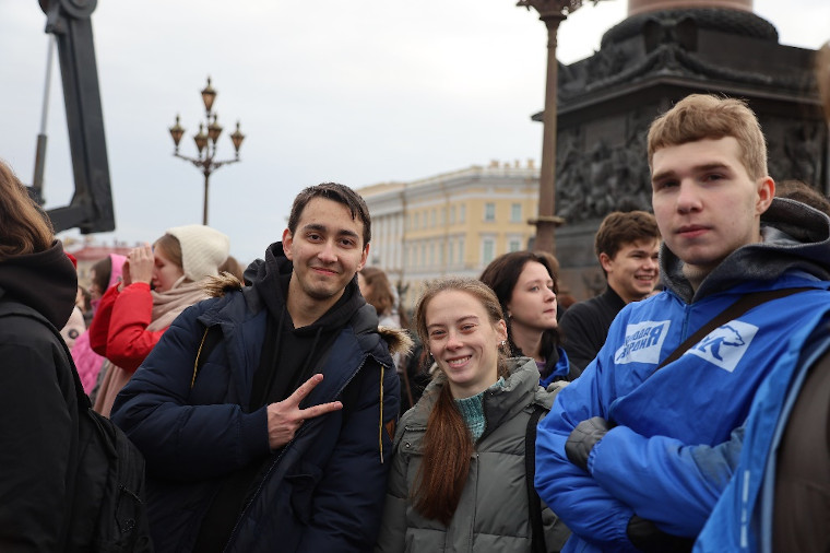 Обучающиеся ФГБОУ ВО «Российский государственный гидрометеорологический университет» приняли участие в праздничном флешмобе, приуроченном ко дню рождения Президента Российской Федерации Владимира Владимировича Путина Обучающиеся приняли участие в праздничном флешмобе на Дворцовой площади, организованным Санкт-Петербургским региональным отделением Всероссийской общественной организации «Молодая гвардия Единой России», возглавляемым Александром Николаевичем Амелиным. Мероприятие направлено на укрепление патриотических ценностей и гражданской активности среди молодежи.