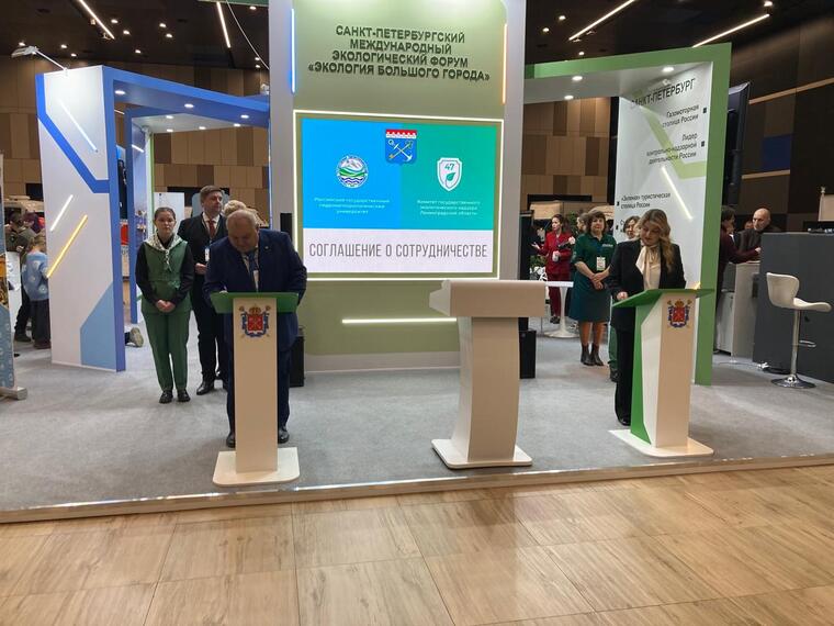 В Санкт-Петербурге завершил работу международный экологический форум «Экология большого города» 24-25 марта 2026 года на площадке КВЦ «Экспофорум» под эгидой Невского международного экологического конгресса прошел Санкт-Петербургский международный экологический форум «Экология большого города». По традиции, РГГМУ в лице СНО приняло участие в выставочной части форума в качестве ВУЗа, имеющего экологические направления подготовки студентов. Кроме того, представители РГГМУ приняли активное участие в ряде секций. Поздняков Ш.Р. выступил с докладом в секциях «Природноохранные инновации» и «Чистая Ладога». Ершова А.А. выступила с докладом «Методы и средства обеспечения исследований содержания и распространения микропластика в акватории Финского залива и Невской губы». В конференции молодых ученых в сфере охраны окружающей среды были представлены научные проекты и стартапы коллективом молодых ученых ПластикЛаб Голубевой Е.А., Ошурковым А.В., Прощаковой В.А. Студенты Института гидрологии и океанологии подготовили и провели настольную игру для экологического просвещения населения. Также в рамках акселератора «Гидромет-Антропосфера» и при поддержке комитета экологического надзора Ленобласти была проведена блиц-версия игры «Эко-миссия». В рамках форума 25 марта 2026 ректором РГГМУ Михеевым В.Л. и председателем Комитета государственного экологического надзора Ленинградской области Агаевой Р.Э. было подписано соглашение о сотрудничестве в сфере охраны окружающей среды, организации и развития системы экологического образования, воспитания и формирования экологической культуры. ![]() ![]() ![]() ![]() ![]()